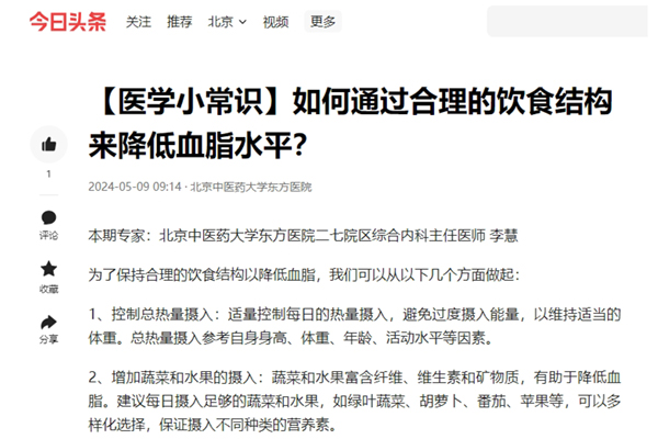 【医学小常识】如何通过合理的饮食结构来降低血脂水平?