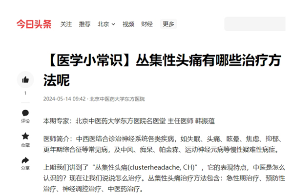 上期我们讲到了“丛集性头痛(clusterheadache, CH)”,它的表现特点,中医是怎么认识的?现在让我们说说怎么治疗。丛集性头痛治疗方法包含:急性期治疗、预防性治疗、神经调控治疗、中医药治疗。