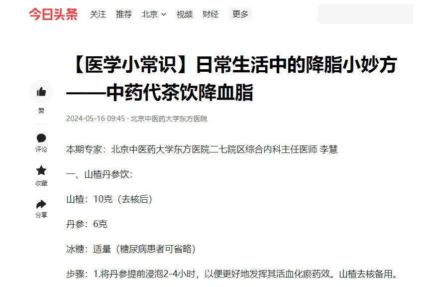 注意事项:山楂丹参饮虽具有一定的降脂作用,但并不能完全替代药物治疗,对于确诊为高脂血症的患者,仍需要在医生指导下进行规范的治疗,包括药物治疗和生活方式干预。同时,饮用山楂丹参饮时也应注意适量,避免过量使用或不当使用带来的不良反应。