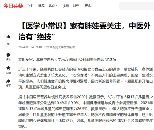 【医学小常识】家有胖娃要关注,中医外治有“绝技”
