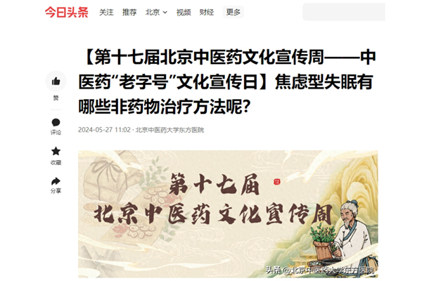 【第十七届北京中医药文化宣传周——中医药“老字号”文化宣传日】焦虑型失眠有哪些非药物治疗方法呢?