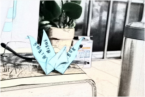 援鄂医疗队的护理老师她们用休息的时间开动脑筋,收集手头现有可用材料,制成了一个个手工“战疫”包,“战疫”包斜挂肩头,一根笔,一个小本,随时记录着病人的情况与需求,诊疗、护理患者更加方便贴心。护士王晓嘉和王晓君将承载着无限祝福,美好祝愿的千纸鹤送到了每一位患者的手上;护士李秀丽和陈默岩制作的别样“手抄报”,为特殊时期的患者开展“身心并调”的优质护理服务……